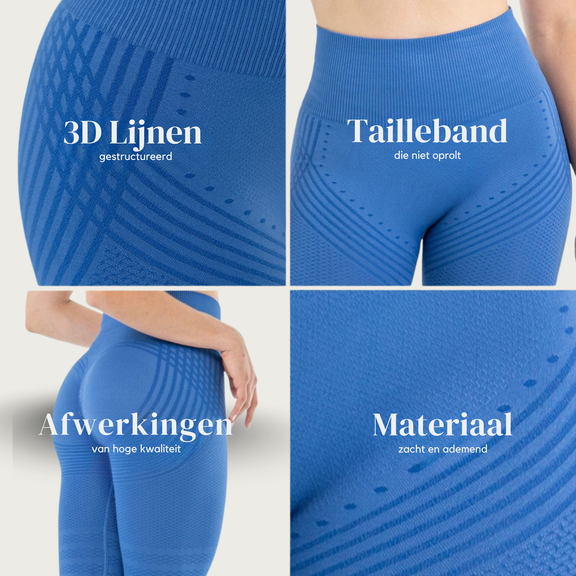 De innovatieve 3D-lijnen in de stof hebben een subtiel masserend effect en stimuleren de doorbloeding en helpen zo de zichtbaarheid van cellulite te verminderen.