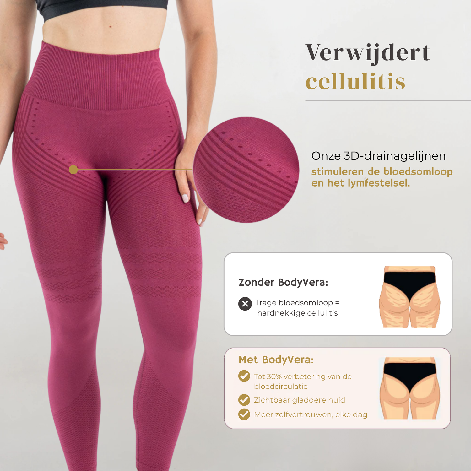 De BodyVera™ Anti-Cellulitis 3D Legging is ontworpen om jouw natuurlijke vormen te omarmen. En je huid zichtbaar gladder te maken.