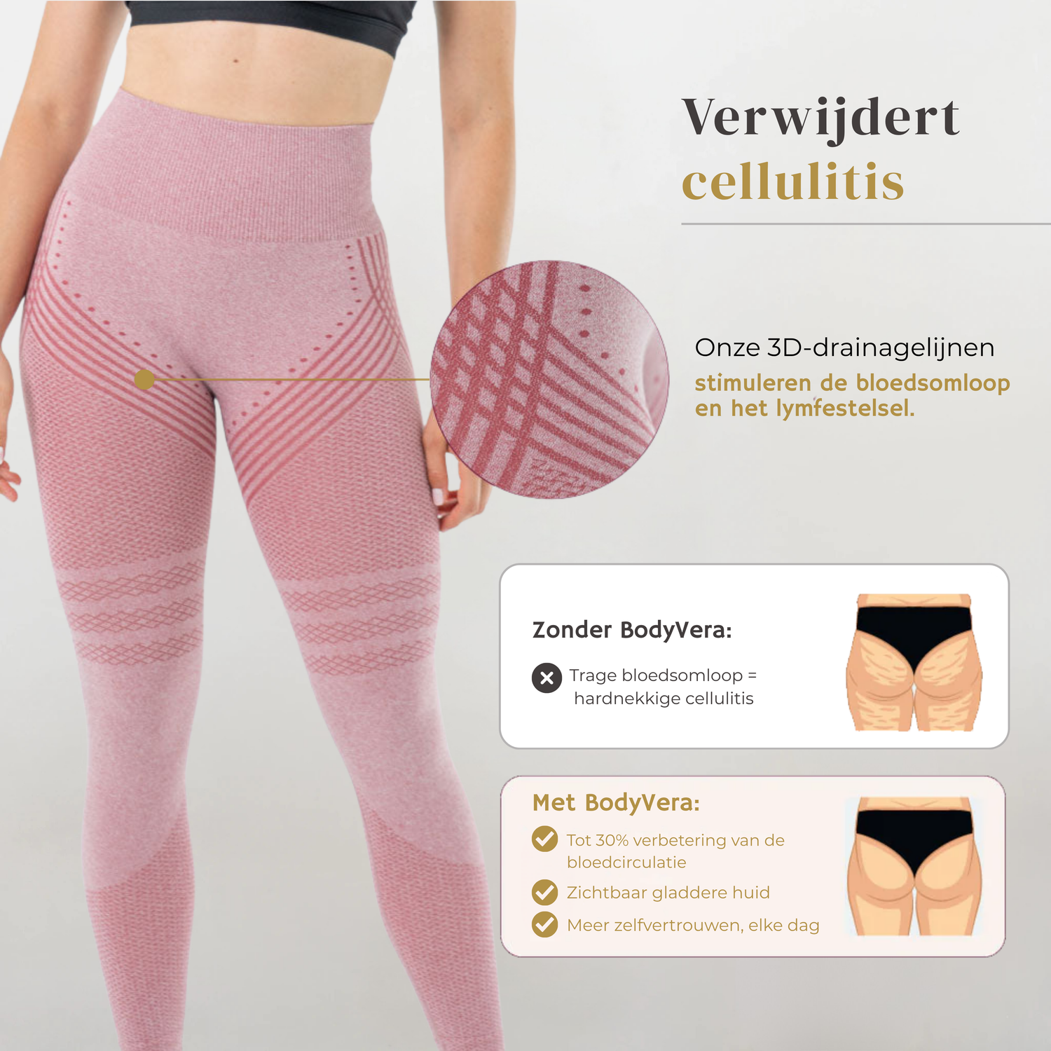 De BodyVera™ Anti-Cellulitis 3D Legging is ontworpen om jouw natuurlijke vormen te omarmen. En je huid zichtbaar gladder te maken.
